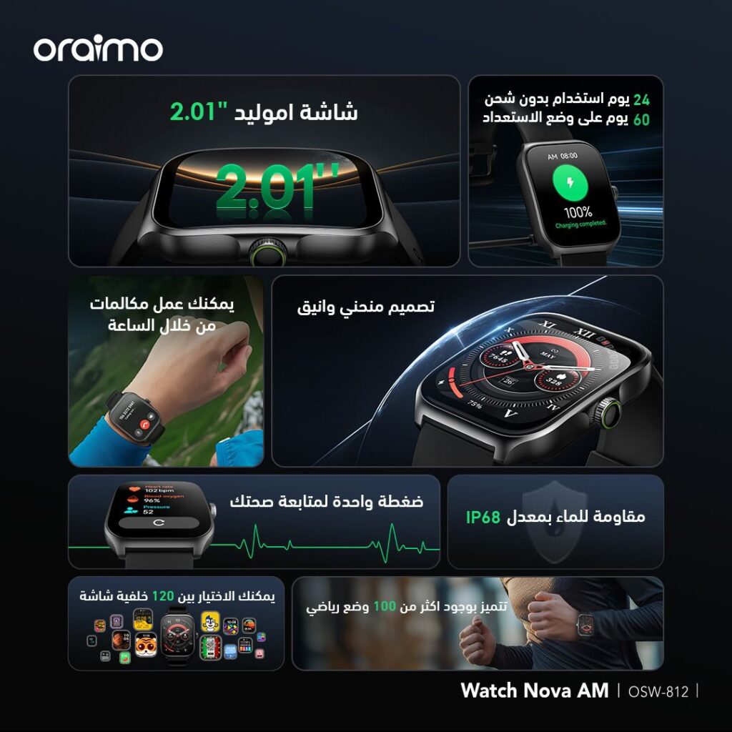 أعلنت شركة oraimo، العلامة التجارية الرائدة في مجال ابتكارات التكنولوجيا الذكية ، عن إطلاق أحدث منتجاتها في السوق المصري، وهي ساعة Watch Nova AM الذكية.