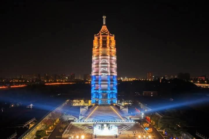 إضاءة برج نانجينغ أحد أبرز رموز العمارة الصينية التقليدية بأسم محافظة الجيزة