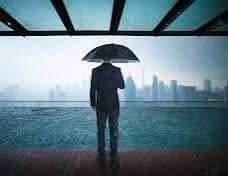 يمكن أن تكون صورة مظلية أو رمزية مثل شخص يحمل مظلة سوداء أمام مبنى حكومى بريطانى مع خطوط ضبابية توحى بالسرية والتجسس.