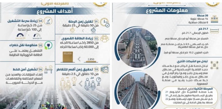 تشمل مسارا علويا وسطحيا وتضم ٢٢ محطة بما يقلل الحاجة الى نزع الملكيات - المرحلة الثالثة جارى التخطيط