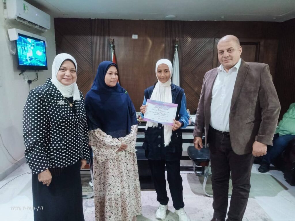 كما كرمت بسمة الطيري الطالبة بمدرسة العيايشا الإبتدائية بقوص لحصولها على المركز الثالث، والمعلمة الهام شاكر.