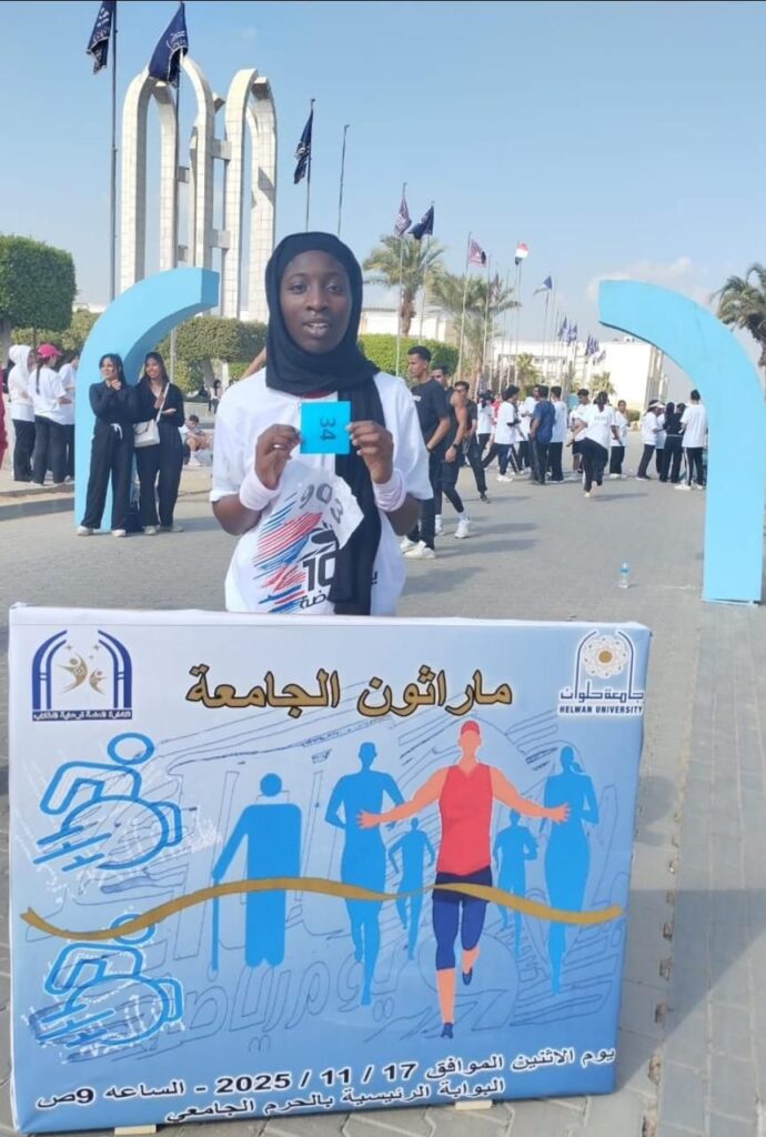 القاهرة – في إطار حرص جامعة العاصمة على دعم وتشجيع طلابها الوافدين، تقدّمت الجامعة وإدارة الطلاب الوافدين بخالص التهنئة للطالبة حواء نوهو سانوسي من نيجيريا، وذلك بمناسبة إنجازها المتميز في ماراثون الجامعة، حيث حققت مركزًا متقدمًا بين الطالبات.