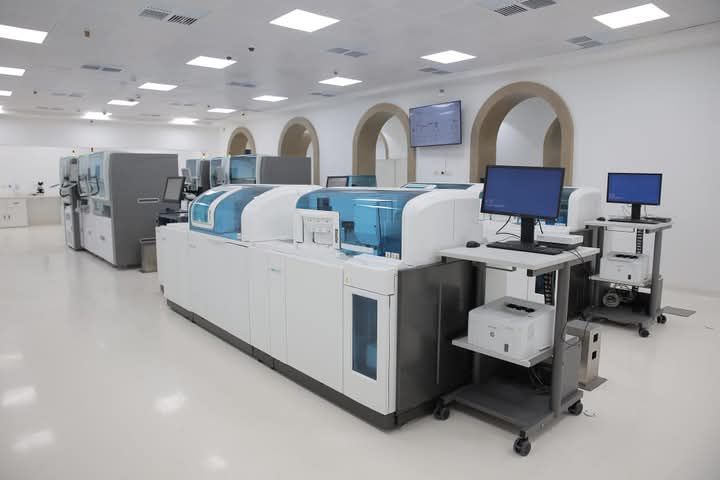 يغطي نظام التشغيل الآلي المتطور للمعمل نطاقًا واسعًا من الاختبارات الطبية المعملية، بما في ذلك الكيمياء الإكلينيكية، واختبارات المناعة، وتخثّر الدم، وتحاليل البول، وأمراض الدم. ويقوم المعمل بتنفيذ كافة الاختبارات الطبية بشكل آلي بالكامل، بما في ذلك نقل العينات وتنفيذ مراحل ما قبل وما بعد التحاليل، وبالنظر للدورة الكاملة لكل اختبار، ندرك أن المعمل الرئيسي المطور يقلل بشكل كبير معدلات الأخطاء البشرية، لا سيما في مراحل ما قبل التحليل، والتي تشهد وقوع أكثر من 60% من الأخطاء المعملية المعتادة.