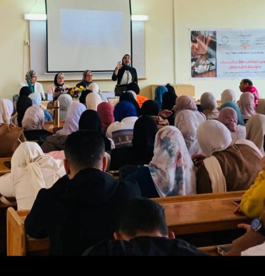 تحت رعاية الأستاذ الدكتور/ إلهامى ترابيس – رئيس جامعة دمنهور، الأستاذ الدكتور/ إيناس ابراهيم نائب رئيس الجامعة لشؤون خدمة المجتمع وتنمية البيئة،وبالتعاون مع صندوق علاج الإدمان والتعاطى التابع لرئاسة مجلس الوزراء برئاسة الاستاذ الدكتور/ عمرو عثمان، عقدت ندوة توعوية عن مخاطر الإدمان والمواد المخدرة بكلية التمريض، بإشراف الاستاذ الدكتور/ عبير عبد الفتاح عميد الكلية، الأستاذ الدكتور/ رشا عيسى وكيل الكلية لشؤون خدمة المجتمع وتنمية البيئة. والتى تأتى ضمن سلسلة فعاليات البرنامج التثقيفى والتوعوى الذى ينظمه قطاع خدمة المجتمع ضمن مبادرة “جامعة خالية من الإدمان” . بحضور الدكتورة/غادة الديب – رئيس وحدة التطوع بفرع الصندوق بالبحيرة والدكتورة/ هالةصنيدق – منسق برامج الصندوق بالجامعة،وعدد من طلاب الكلية. أكدت الأستاذ الدكتور إيناس ابراهيم حرص الجامعة انطلاقا من مسؤوليتها المجتمعية على تكثيف الأنشطة التوعوية والفعاليات التثقيفية عن القضايا المجتمعية الهامة التي تؤثر على الشباب ومستقبلهم، تجنبا لآثارها السلبية، وتماشيا مع رؤية الدولة المصرية وتحقيقا لأهداف التنمية المستدامة، مؤكدة على دور الجامعة كمنارة للوعي والمعرفة بين الشباب. أوضحت الأستاذ الدكتور/ عبير عبد الفتاح حرص الكلية على المشاركة في الأنشطة التوعوية التي تسهم في رفع الوعي للطلاب بمختلف القضايا ومن بينها قضايا الإدمان، انطلاقا من دور الكلية المجتمعي والتوعوي. كما اكدت الاستاذ الدكتور رشا عيسي أهمية بناء الشخصية الواعية وتحصين الشباب ضد كافة التحديات والمخاطر التي تهدد مستقبلهم، وعلى رأسها آفة الإدمان، مشيدة بدور صندوق علاج الإدمان والتعاطي ومشاركته الفعالة مع الجامعة للتصدي لتلك الظاهرة . وفى كلمتها أشارت الدكتورة/ غادة الديب إلى مهام وأهداف ومحاور عمل الصندوق وهى (الوقاية – العلاج – البحث العلمى – تحليل المخدرات) وأوضحت أهمية الوقاية والإكتشاف المبكر لمرض العصر وهو تعاطى وإدمان المواد المخدرة ، ونبهت الطلاب بخطورة أنواع محددة من الأدوية التى تستخدم كمواد مخدرة تؤثر سلباً على مركز الإحساس بالمخ وتدمر خلايا الجهاز العصبى المركزى ، كما أكدت اهمية الخط الساخن 16023 للعلاج في سرية تامة وأمان، وكذلك تلقي المشورة والتوجي