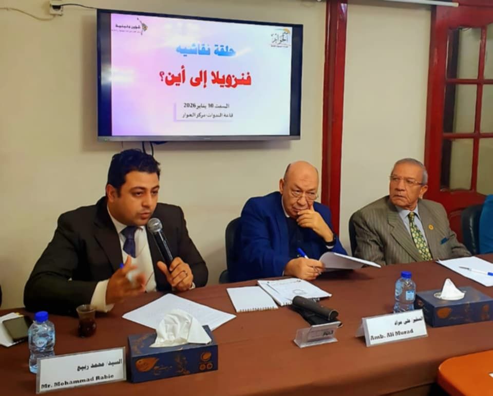 وفي هذا السياق، نظم برنامج الشؤون اللاتينية بمركز الحوار للدراسات السياسية والإعلامية حلقة نقاشية بعنوان «فنزويلا إلى أين؟»، لمناقشة تطورات المشهد الراهن واستشراف آفاقه المستقبلية.