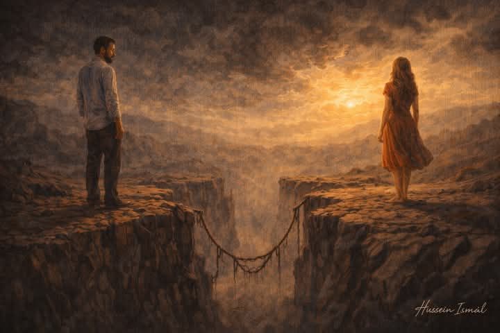 بدأت المسافة تتسلل بينهما، مسافة لا تُقاس بعدد المكالمات أو اللقاءات، بل بإحساس خفي بأن دوره يتآكل. كان يقدّم لها المساعدة حتى حين لا تطلبها، يعرض الحلول لمشاكل حلتها بالفعل، ويتدخل حيث لم يعد تدخله ضروريًا، لا بدافع السيطرة، بل بدافع الخوف من أن يصبح زائدًا عن الحاجة