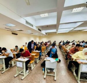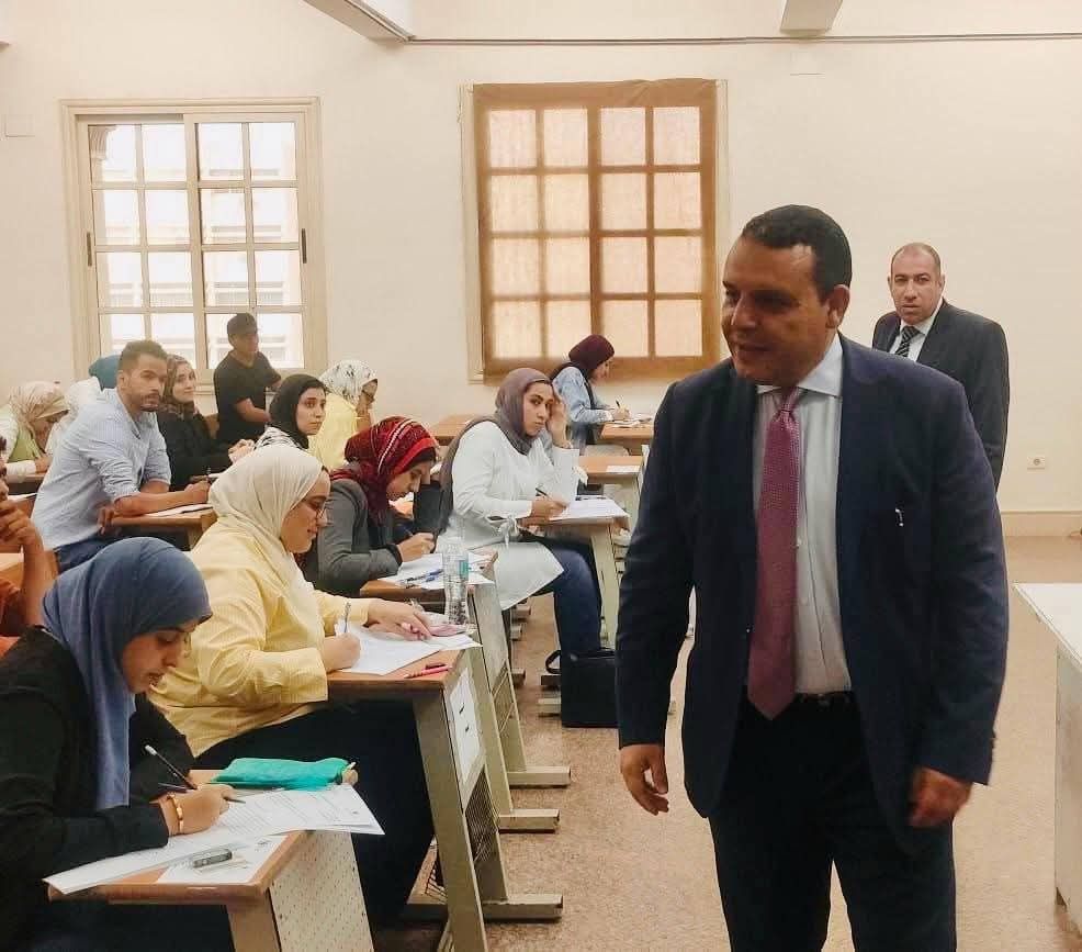 وخلال الجولة تفقد الشريف قاعات الامتحانات واطمأن على انتظام سير الاختبارات في بيئة مناسبة تراعي تكافؤ الفرص بين جميع المتقدمين واستمع إلى ملاحظات القائمين على المسابقة موجّهًا بضرورة الالتزام بأعلى معايير الشفافية والانضباط والدقة في التصحيح والتقييم.