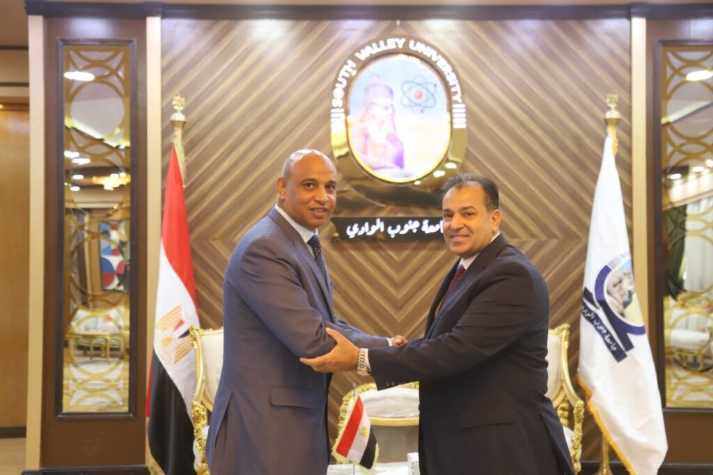 استقبل الدكتور أحمد عكاوي رئيس جامعة جنوب الوادي، بمكتبه صباح اليوم، الدكتور أشرف موسى نائب رئيس الجامعة لشئون التعليم والطلاب، حيث قدّم له التهنئة بمناسبة صدور القرار الجمهوري بتوليه منصبه الجديد، متمنيًا له دوام التوفيق والسداد في أداء مهامه لخدمة الجامعة وأبنائها الطلاب. جاء ذلك بحضور الدكتور محمد وائل عبد العظيم نائب رئيس الجامعة لشئون الدراسات العليا، وطروب طلبة أمين الجامعة، ولفيف من القيادات الإدارية بالجامعة.