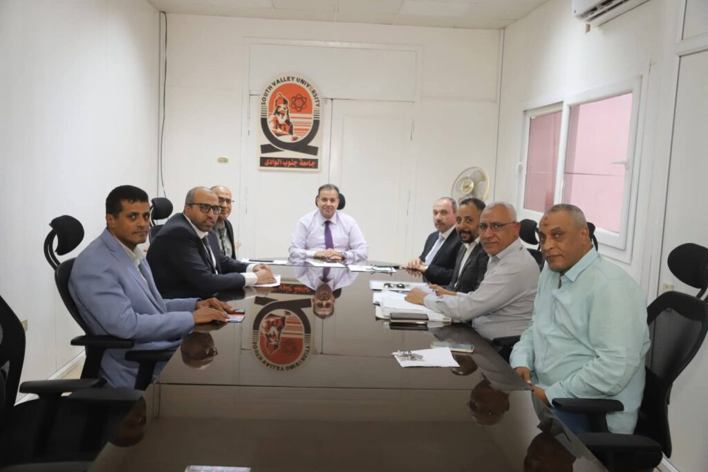 اتساقا مع التوجهات الوطنية بتعزيز الخدمات الصحية وتحسين مؤشرات الخدمة الطبية عقد الدكتور احمد عكاوى رئيس جامعة جنوب الوادي اجتماعا بحضور الدكتور محمد وائل عبد العظيم نائب رئيس الجامعة، الدكتور على غويل عميد كلية الطب، الدكتور حجاجى منصور المدير التنفيذى للمستشفيات الجامعية، الدكتور احمد على عامر نائب المدير التنفيذى للمستشفيات الجامعية، المهندس محمد كامل مدير عام الادارة الهندسية ، الاستاذ عمرو فتحى مدير عام العلاقات العامة والاعلام، الاستاذ عمر مصطفى مدير عام الشئون الإدارية.
