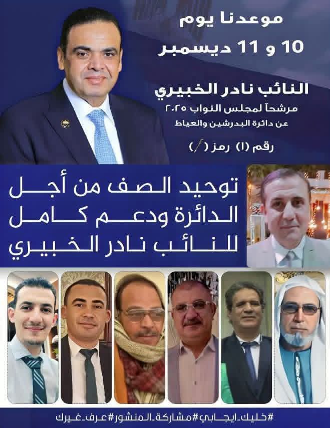 وبما يحقق تطلعاتهم المشروعة والعمل الذي بدأه في خدمة الدائرة، وإيماناً بقدرة سيادته على مواصلة ما يعود بالنفع على الأهالي، وبعد الحراك الكبير والاهتمام الواسع الذي أحدثه منشوري الأخير بين أهل الدائرة والعزبة ، ومع تقديرنا الكامل لآراء الناس وتفاعلهم الصادق، وانطلاقاً من حرصنا الدائم على المصلحة العامة قبل أي اعتبار آخر… نؤكد أننا نقف اليوم خلف النائب نادر الخبيري دعمًا للمسار الذي يخدم الدائرة وأهلها، وبما يحقق تطلعاتهم المشروعة..