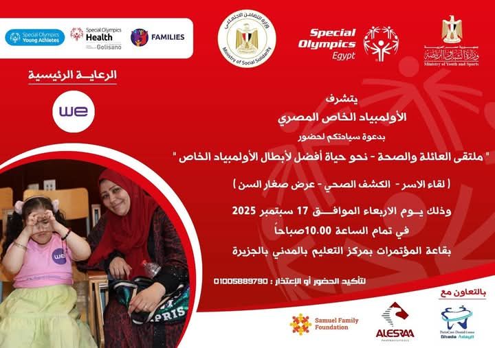 تنطلق غداً الأربعاء فعاليات ملتقى العائلة والصحة – نحو حياة أفضل لأبطال الأولمبياد الخاص المصري، والذي ينظمه الأولمبياد الخاص المصري بالتعاون مع وزارتي التضامن الاجتماعي والشباب والرياضة، وعدد من الشركاء الداعمين.