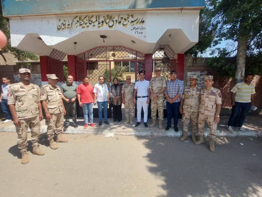 حيث كان في استقباله، الملازم أول شريف السيد قائد المدرسة، والمهندس حازم زيدان مدير التعليم الفني بنجع حمادي، والأستاذة أسماء حسني مديرة المدرسة، والمهندس أحمد عبد الحليم وكيل المدرسة.