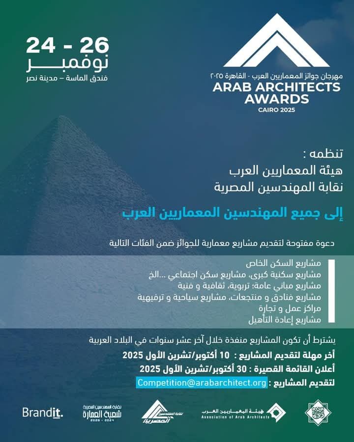 المهرجان، الذي تنظمه نقابة المهندسين المصرية بالتعاون مع إتحاد المهندسين العرب وهيئة المعماريين العرب، وتنفذه شركة Brandit Cairo، يأتي إمتدادًا للنجاح الذي حققته النسخ السابقة في بيروت 2018 وعمّان 2022، حيث مثّلتا منصّة رائدة لتسليط الضوء على أبرز المشاريع المعمارية المتميزة في العالم العربي.