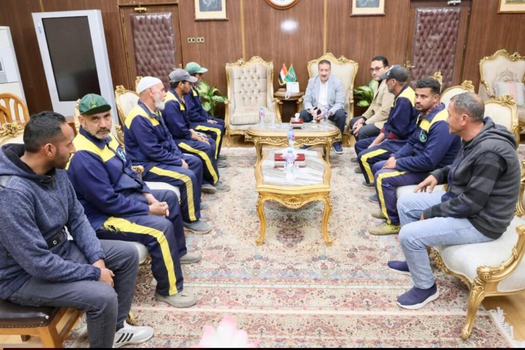 محافظ المنوفية يلتقى عدد من عمال النظافة بمكتبه ويقرر صرف مساعدات عينية لهم.