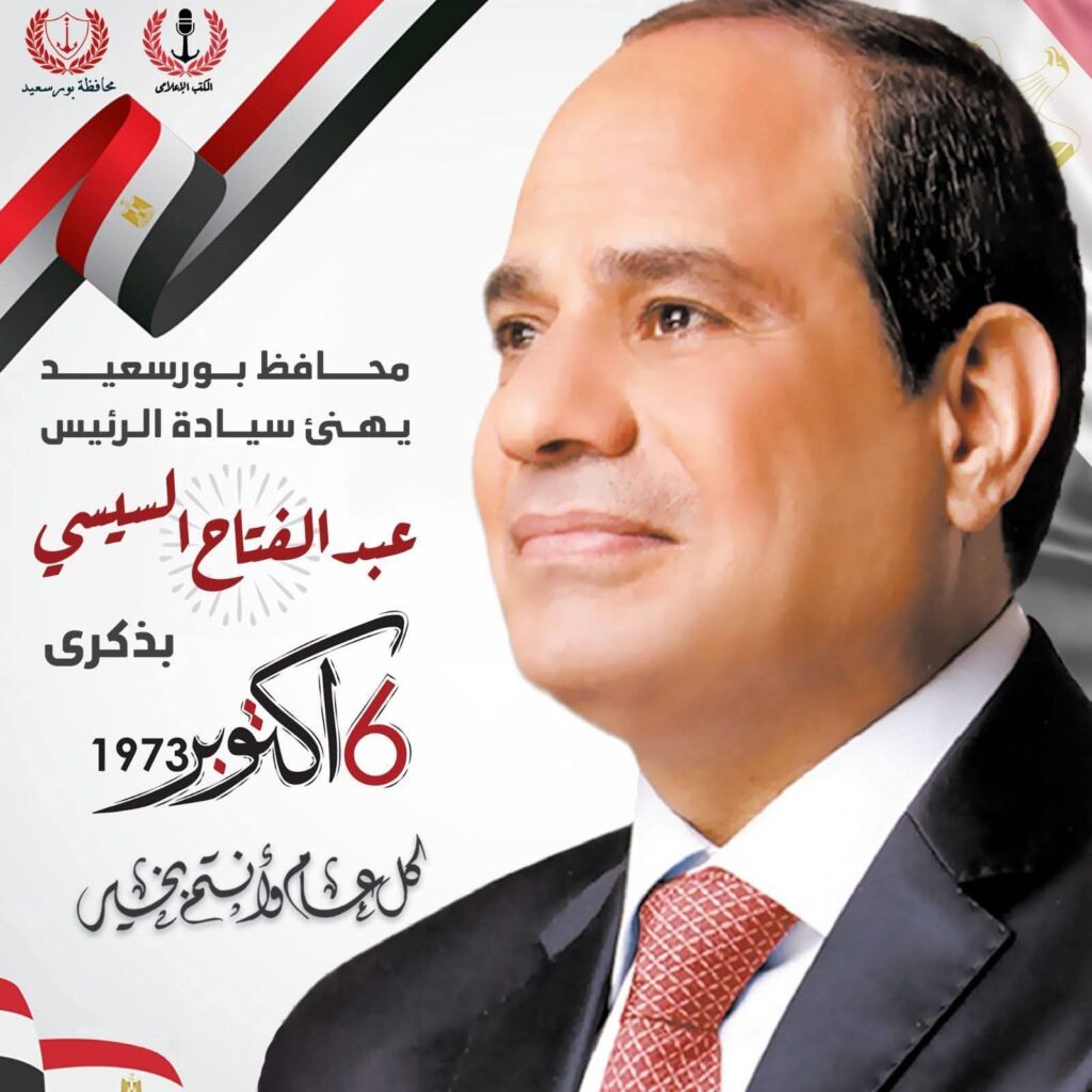 تقدم اللواء أ ح / محب حبشي محافظ بورسعيد، بأسمى معاني التهنئة إلى فخامة السيد الرئيس / عبد الفتاح السيسي رئيس الجمهورية، بمناسبة الاحتفال بالذكرى الـ 52 لانتصارات أكتوبر المجيدة