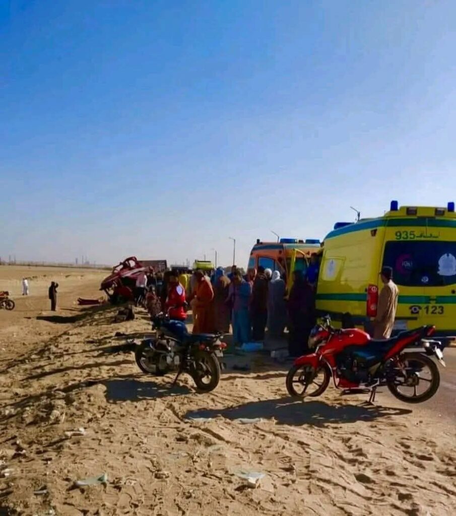 مصرع 5 أشخاص وإصابة 5 آخرين في تصادم سيارة نقل على الصحراوي قرب قرية الشيخ فضل بالمنيا