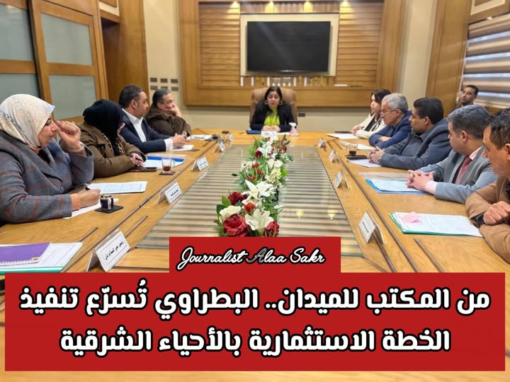 وخلال الاجتماع، استعرضت نائب المحافظ نسب تنفيذ المشروعات المدرجة ضمن الخطة الاستثمارية بكل حي على حدة، وناقشت موقف طرح المشروعات التي لم يبدأ تنفيذها، موجهة بضرورة إعداد تقارير دورية مفصلة تتضمن نسب الإنجاز والتحديات والمعوقات، لاتخاذ القرارات اللازمة التي تضمن انتظام سير العمل وتعظيم الاستفادة من الاعتمادات المالية المخصصة، بما ينعكس على تحسين مستوى الخدمات المقدمة للمواطنين.