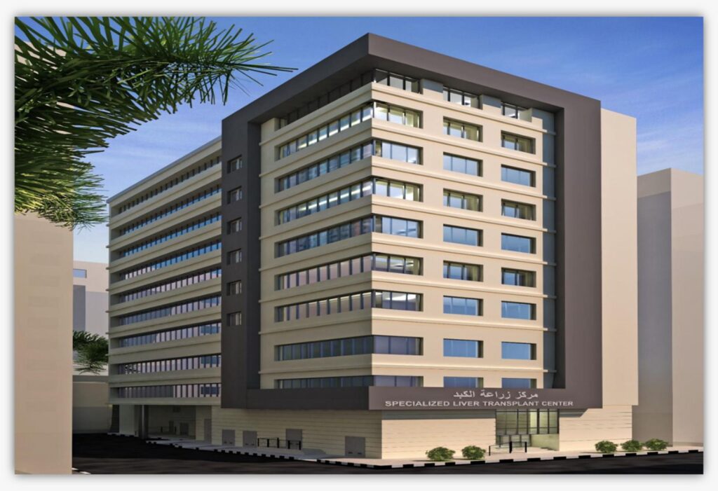تم إنشاء مبنى زراعة الكبد على مساحة 650 مترًا مربعًا، ويتكون من دور أرضي، وميزانين، بالإضافة إلى 9 طوابق، وغرف خدمات، ويضم المبنى (3 حجرات للعمليات، 14 سريرًا للعناية المركزة، 5 أسرة للإفاقة، و56 سريرًا لإقامة المرضى) ويحتوي الدور الأرضي “دور الخدمات” على (مدخل رئيسي، غرفة المبادل الحراري، غرفة السويتش جير، غرفة المحولات، غرفة المولد، غرفة UPS، غرفة اللوحات الكهربائية، غرفة الغازات الطبية، وغرفة المخلفات غير النظيفة)، وأما الميزانين المخصصة للأشعة العادية، فيشمل (الكافتيريا، قسم الأشعة العادية، غرفة تغيير ملابس للرجال والسيدات، وغرفة الزيارة المرئية)، ويشتمل الدور الأول العلوي المخصص للعيادات الخارجية وقسم الأشعة على (غرفة الأشعة المقطعية، غرفة أشعة الرنين، 7 عيادات طبية، غرفة سحب عينات، غرفتين للأشعة التلفزيونية، الصيدلية، الأرشيف، قسم استقبال المرضى، بالإضافة إلى 3 مخازن طبية).