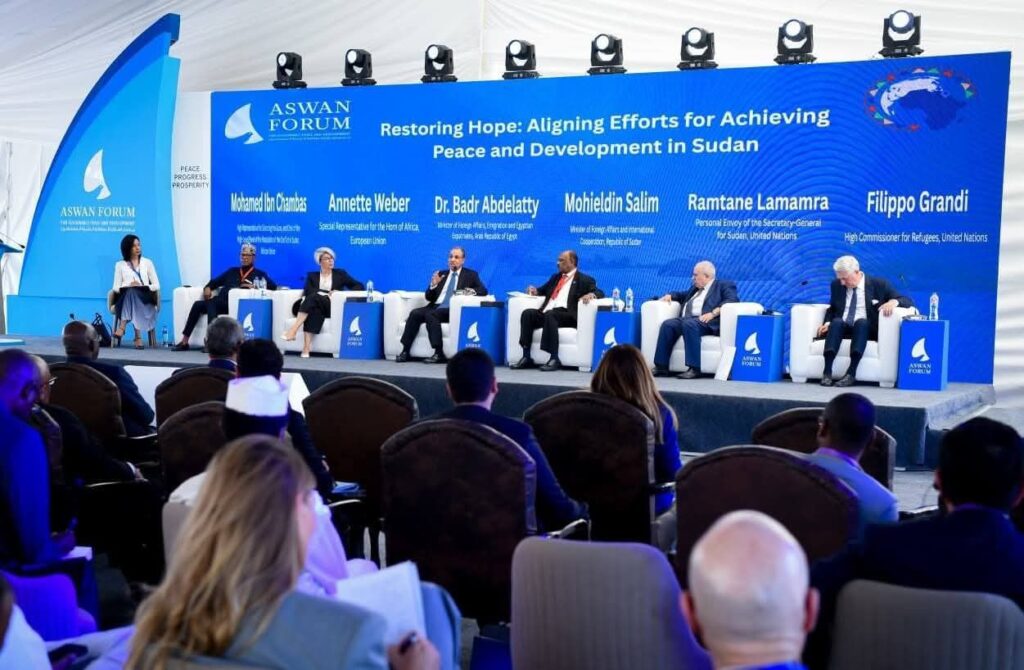 شارك د. بدر عبد العاطي وزير الخارجية والهجرة وشئون المصريين بالخارج، يوم الأحد ١٩ أكتوبر ٢٠٢٥، كمتحدث في جلسة بعنوان “استعادة الأمل: مواءمة الجهود المبذولة لتحقيق السلام والتنمية في السودان”، وذلك خلال أعمال النسخة الخامسة من منتدى أسوان للسلام والتنمية المستدامة، والتي عقدت بمشاركة كل من السيد “محي الدين سالم” وزير خارجية السودان، والسيدة “آنيت فيبر” مبعوثة الاتحاد الأوروبي للقرن الأفريقي، والسيد “فيليبو جراندي” مفوض الأمم المتحدة السامي لشئون اللاجئين، والسيد “رمطان لعمامرة” المبعوث الشخصي لسكرتير عام الأمم المتحدة للسودان، والسيد “محمد ابن شمباس” الممثل الأعلى لمبادرة “إسكات البنادق” ورئيس اللجنة رفيعة المستوى لتسوية النزاع في السودان بالاتحاد الإفريقي.