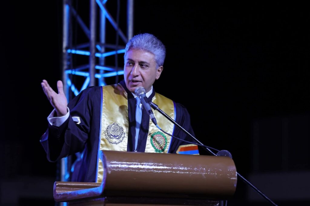 شارك، السيد شريف فتحى وزير السياحة والآثار فى حفل تخرج الدفعة الثانية لطلبة البكالوريوس بالأكاديمية العربية للعلوم والتكنولوجيا والنقل البحرى بفرع الجامعة بمدينة العلمين الجديدة، وذلك بحضور السيد علاء فاروق وزير الزراعة واستصلاح الأراضى نائباً عن دولة رئيس مجلس الوزراء، والمستشار محمود فوزى وزير المجالس النيابية، والدكتور عبد السلام حميد وزير النقل اليمنى واللواء خالد شعيب محافظ مطروح والدكتور إسماعيل عبد الغفار رئيس الأكاديمية واللواء مختار عبد اللطيف رئيس الهيئة العربية للتصنيع وعدد من قيادات الأكاديمية وأعضاء هيئة التدريس وأسر الخريجين.