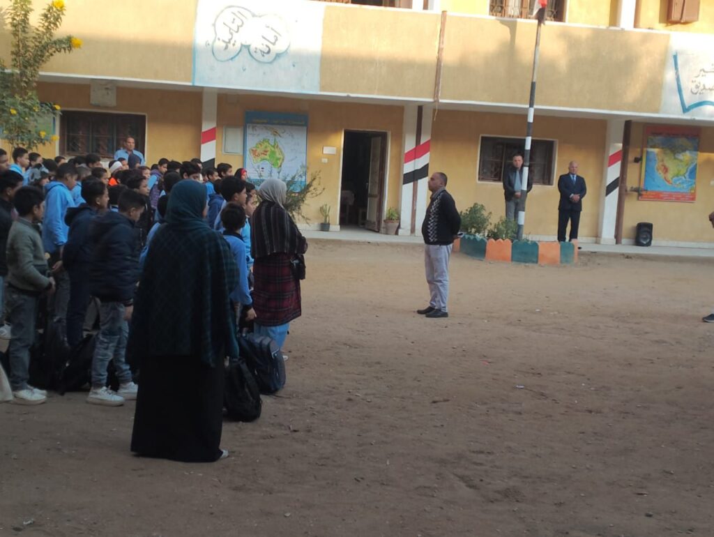 حيث حضر الدكتور ” قبيصي ” طابور الصباح بالمدرسة ، وتحية العلم، وأشاد بانضباط وانتظام العملية التعليمية بالمدرسة ، وحضور جميع العاملين بالمدرسة طابور الصباح، وأكد على ضرورة تنمية وزرع روح الولاء والانتماء للوطن في نفوس الطلاب منذ الصغر.