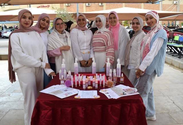 صيدلة الجامعة المصرية الروسية تنظم معرض الطلاب لمستحضرات التجميل.