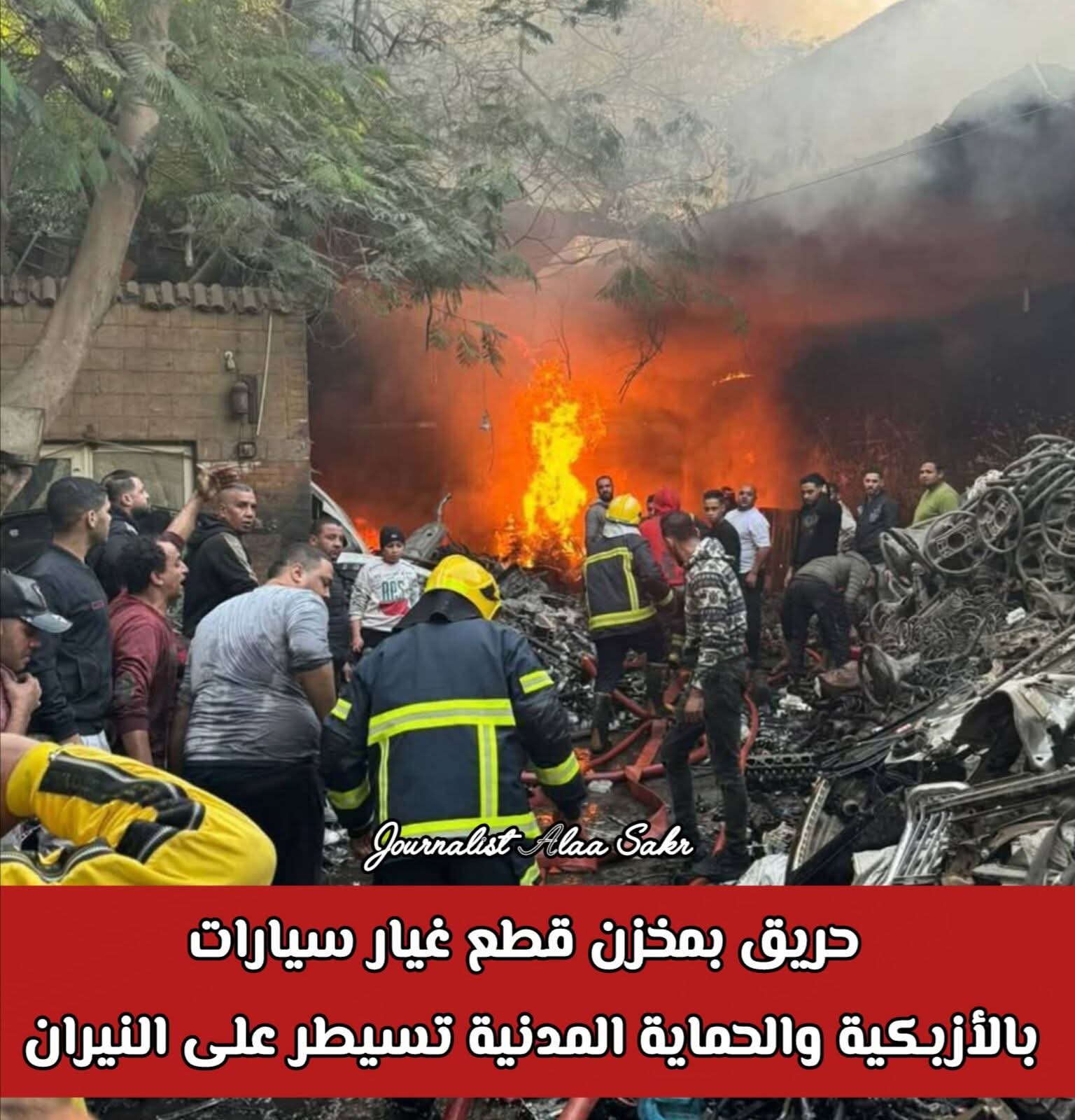 حريق بمخزن قطع غيار سيارات في الأزبكية والحماية المدنية تسيطر على النيران